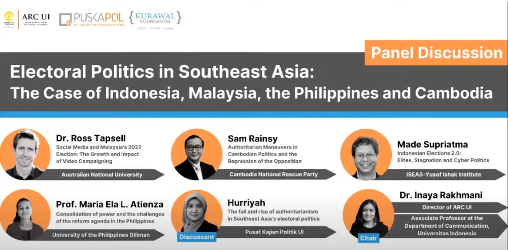 Melalui diskusi "Politik Elektoral di Kawasan Asia Tenggara: Studi Kasus Indonesia, Malaysia, Filipina, dan Kamboja", Asia Research Center Universitas Indonesia (ARC UI) bekerja sama dengan Pusat Kajian Politik Fakultas Ilmu Sosial dan Politik Universitas Indonesia (Puskapol FISIP UI) dan Kurawal berusaha mengidentifikasi faktor-faktor yang memicu kemunduran demokrasi di Asia Tenggara serta mencari solusi untuk perbaikannya. Diskusi ini juga bertujuan untuk memperkuat hubungan antara akademisi dan masyarakat sipil guna mendukung ketahanan demokrasi. Diskusi ini dihadiri oleh Dr. Ross Tapsell dari Australian National University, Made Supriatma dari ISEAS-Yusof Ishak Institute, Sam Rainsy sebagai politisi oposisi di Kamboja, dan Prof. Maria Ela L. Atienza dari University of the Philippines.